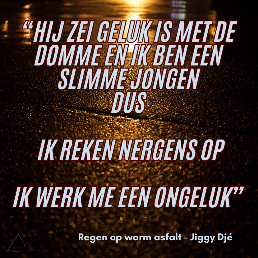 Vandaag een levensles van Jiggy Djé. In ‘Regen op warm asfalt’ schetst hij het beeld van iemand die hard werkt voor wat hij wil en daarom trots is als hij in de spiegel kijkt.